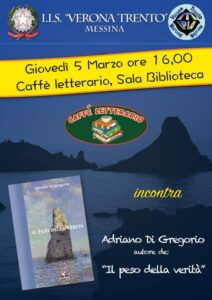 Si è svolto ieri pomeriggio, alle ore 16:00, nella suggestiva cornice della sala Biblioteca dell’Istituto di Istruzione Superiore “Verona Trento”, un incontro-dibattito con lo scrittore Adriano Di Gregorio, autore del romanzo “Il peso della verità”.